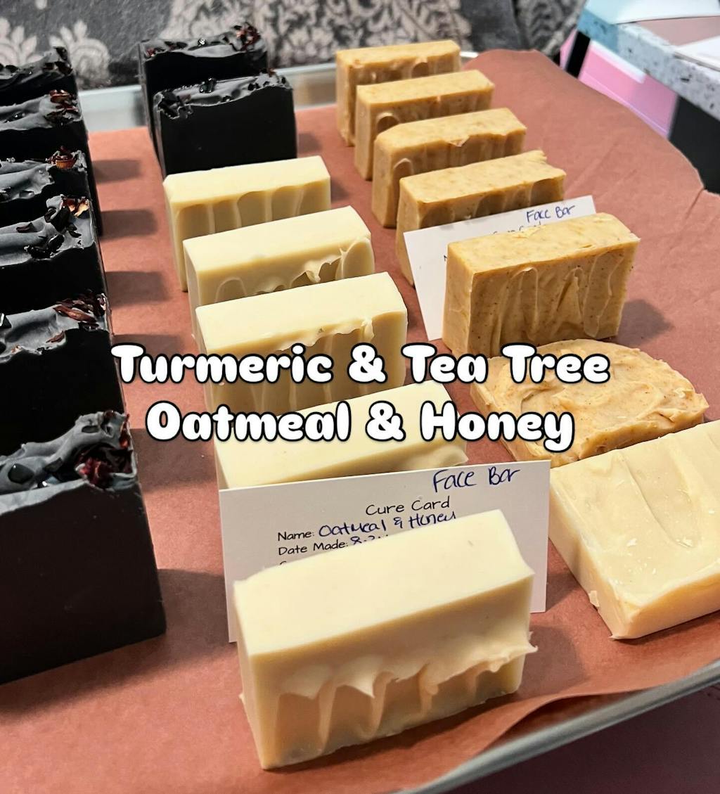 All these soaps are gentle and formulated with the face in mind, but feel free to add your own twist and create your own combinations! Most are unscented, but we include essential oil options for Lemon Turmeric, Lavender Charcoal, Tea Tree & Rose, and French Green Clay.